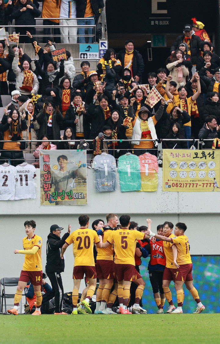 광주는 프리드욘슨을 필두로 하승운, 신창무, 헤이스, 주세종, 유제호, 심상민, 진시우, 변준수, 조성권, 골키퍼 김경민이 선발 출전했다.