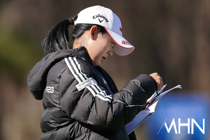 메디힐 박현경과 롯데 황유민 2경기가 열린 가운데, 황유민이 3번홀 경기를 펼치고 있다.