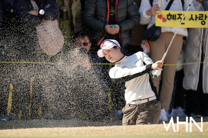 메디힐 배소현과 롯데 최혜진 3경기가 열린 가운데, 최혜진이 6번홀 경기를 펼치고 있다.