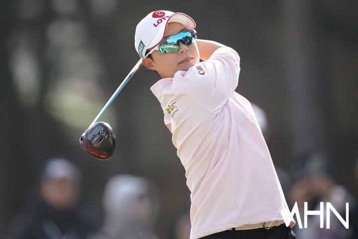 메디힐 박현경과 롯데 김효주 1경기가 열린 가운데, 김효주가 1번홀 경기를 펼치고 있다.