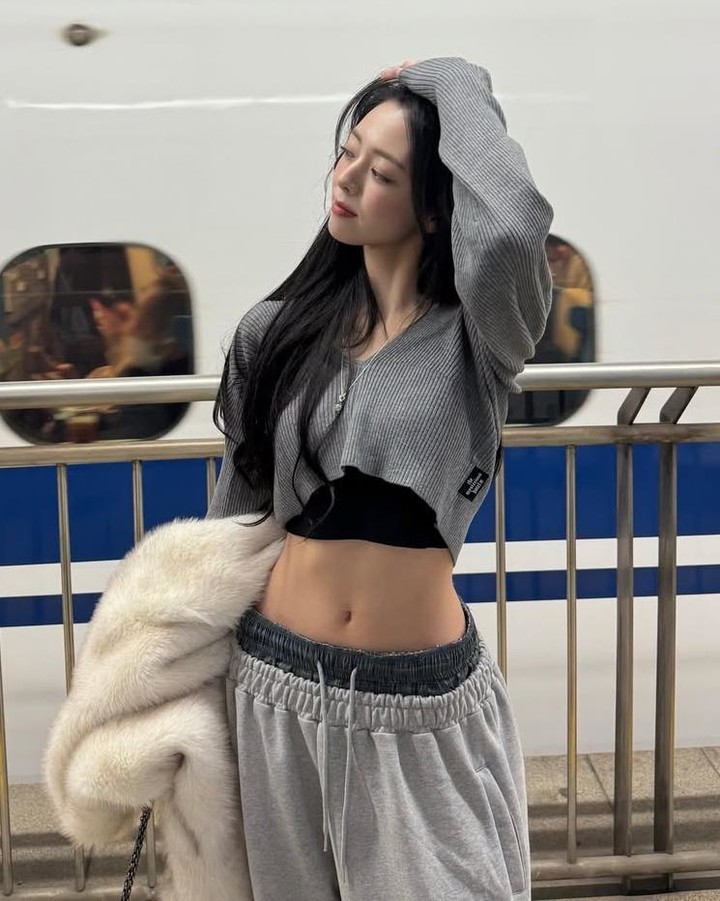 12月7日,柳娜通过个人社交平台公开多组照片,展示了更加成熟的冬季街头时尚造型。照片中,柳娜以火车站站台为背景,身穿灰色短款针织上衣与黑色内搭,搭配低腰灰色运动裤,瞬间吸引众人视线。