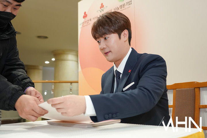 가수 손빈아가 사인회를 갖고 사인을 하고 있다.